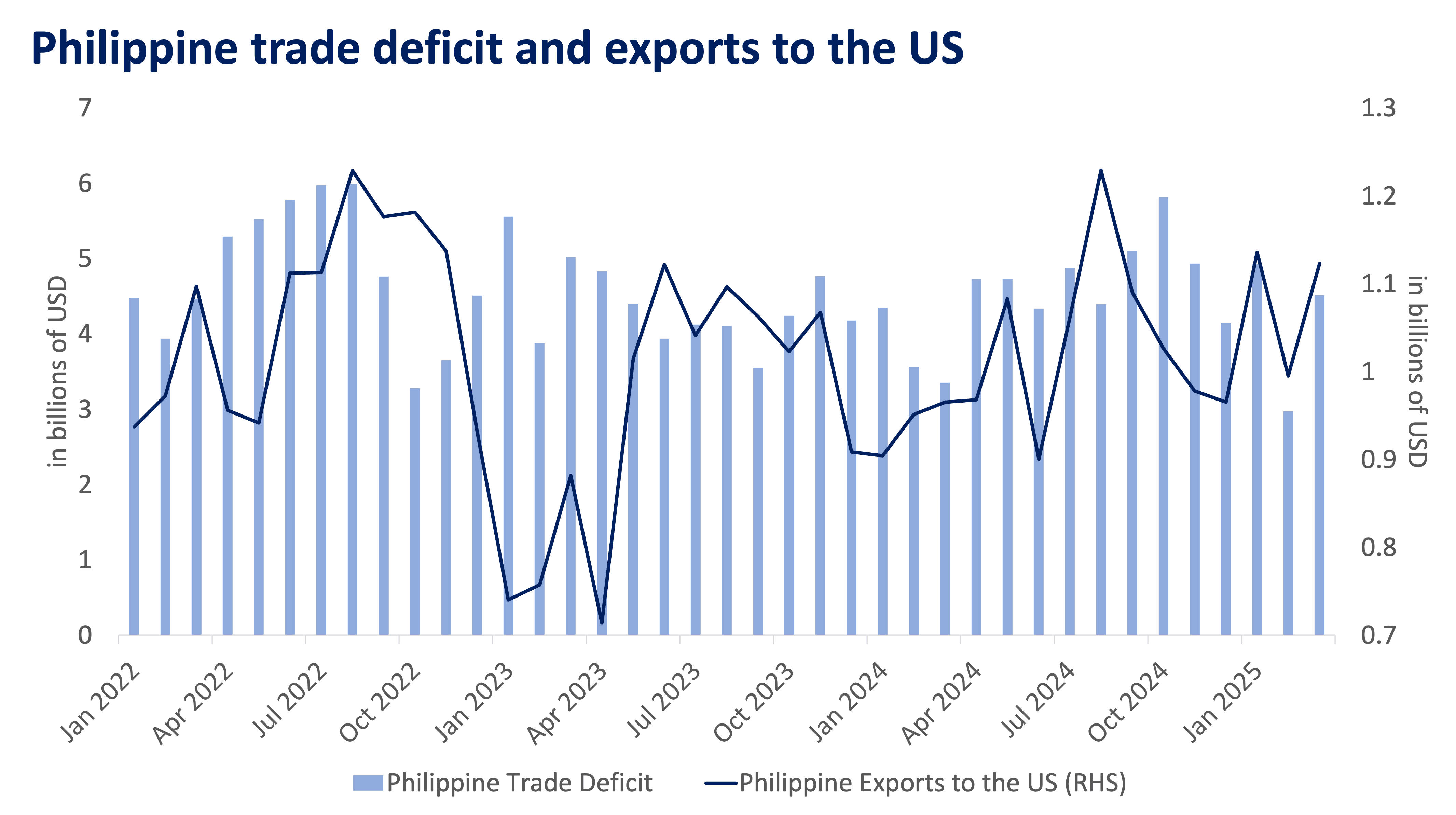 As the US seeks funding to address the increased expenditure, interest rates are expected to edge higher, perhaps as early as next year. Elevated US rates would in turn attract foreign capital to the US away from emerging market economies like the Philippines.