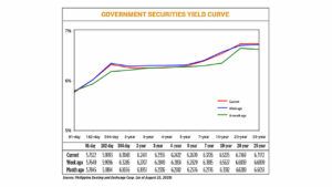 GS yields declined by 1.58 basis points (bps) on average week on week, based on PHP Bloomberg Valuation Service Reference Rates as of August 25 published on the Philippine Dealing System’s website.