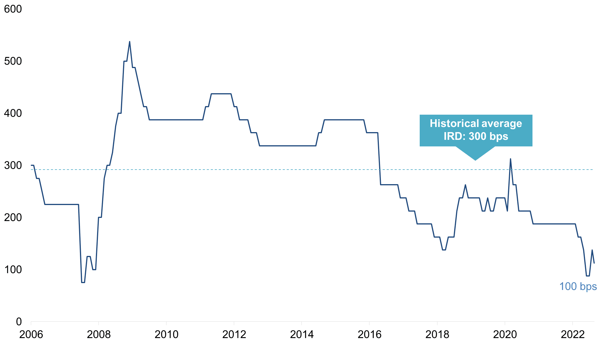 Historically, the spread between the BSP’s Reverse Repurchase (RRP) and the US Fed’s Federal Funds Rate (FFR) is around 3% or 300 bps. A narrow or tight IRD would mean that the home currency is under pressure as the foreign currency may have higher rates. This can happen when their own central bank is implementing strong monetary tightening measures, for instance. Conversely, a wide IRD would mean that the home currency is stable as it maintains an adequate differential with the foreign currency.