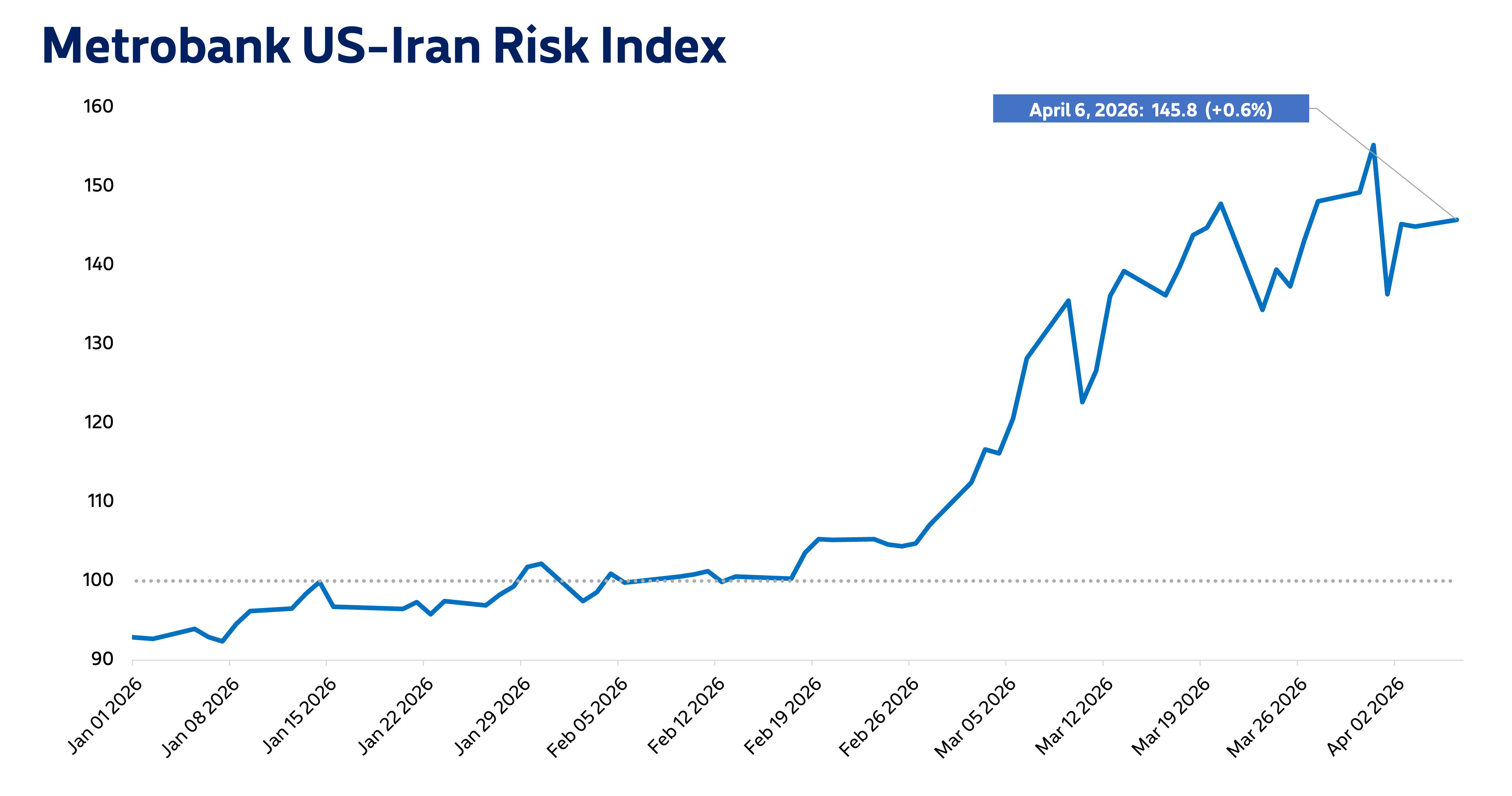 Metrobank’s US-Iran Risk Index settled at 145.8 on April 6, 0.6% higher than its value last Friday, April 3.